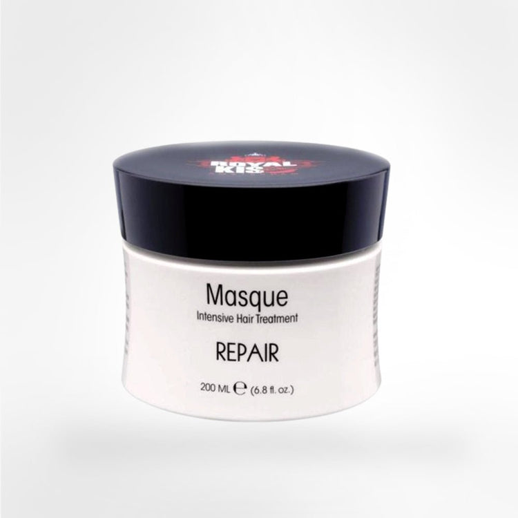 Die Royal KIS Repair Masque repariert die Haarstruktur und macht das Haar kräftiger und widerstandsfähiger. Die Maske enthält einen hohen Keratinanteil und repariert und regeneriert trockenes und chemisch behandeltes Haar.